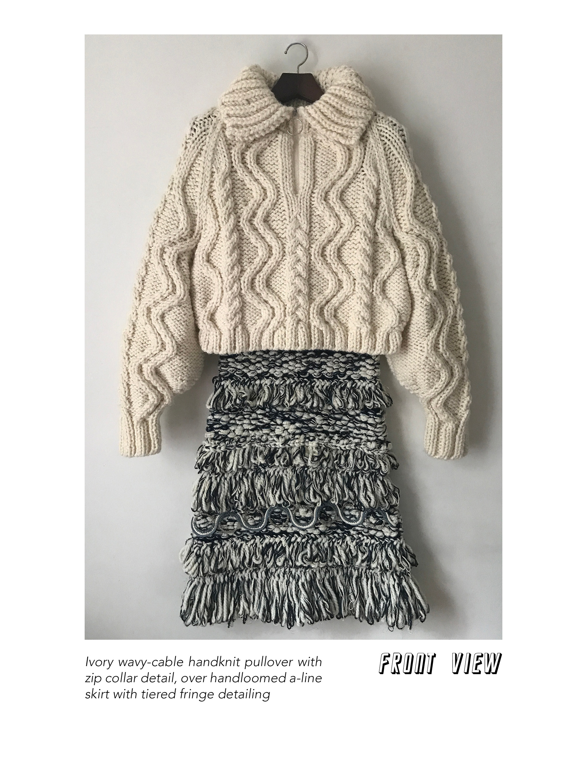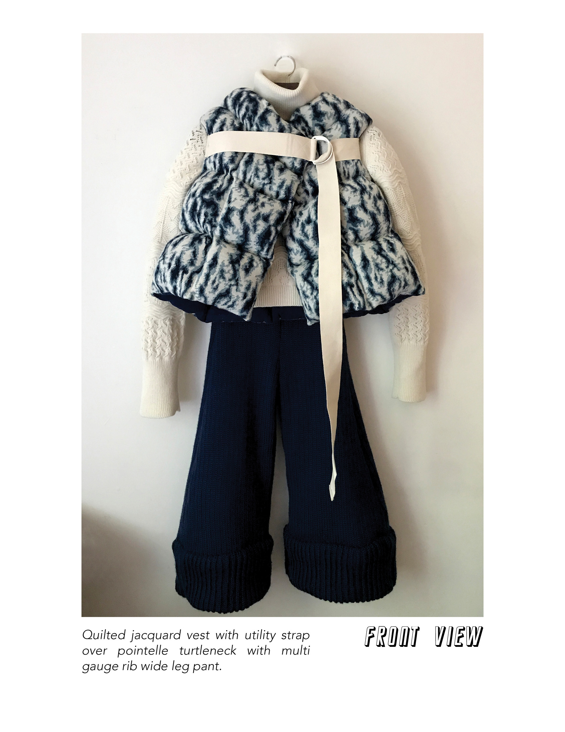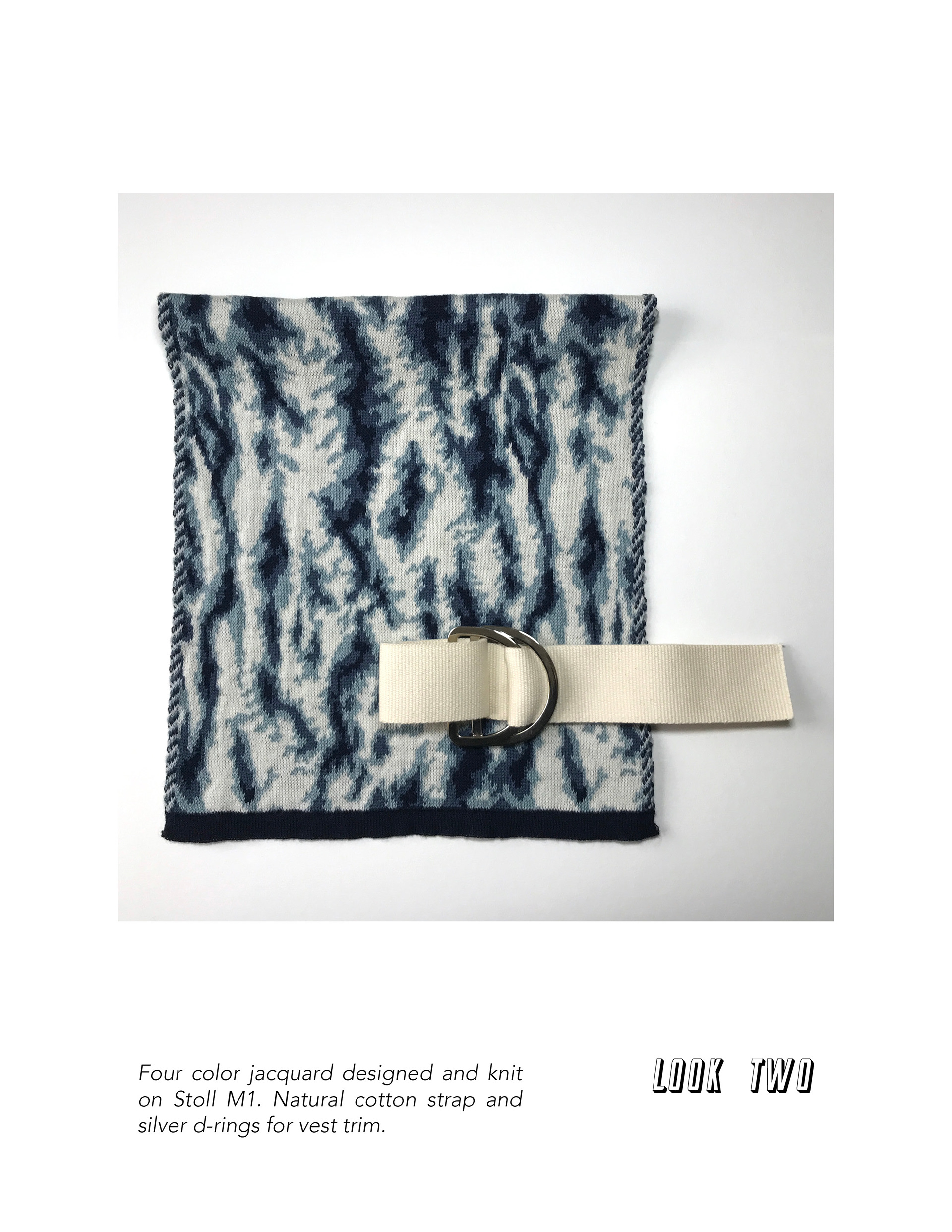 Knit textile development for FIT BFA Senior Thesis Collection. Includes hand knit, hand manipulated machine knit, and fully automated machine knit development.