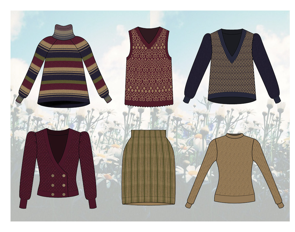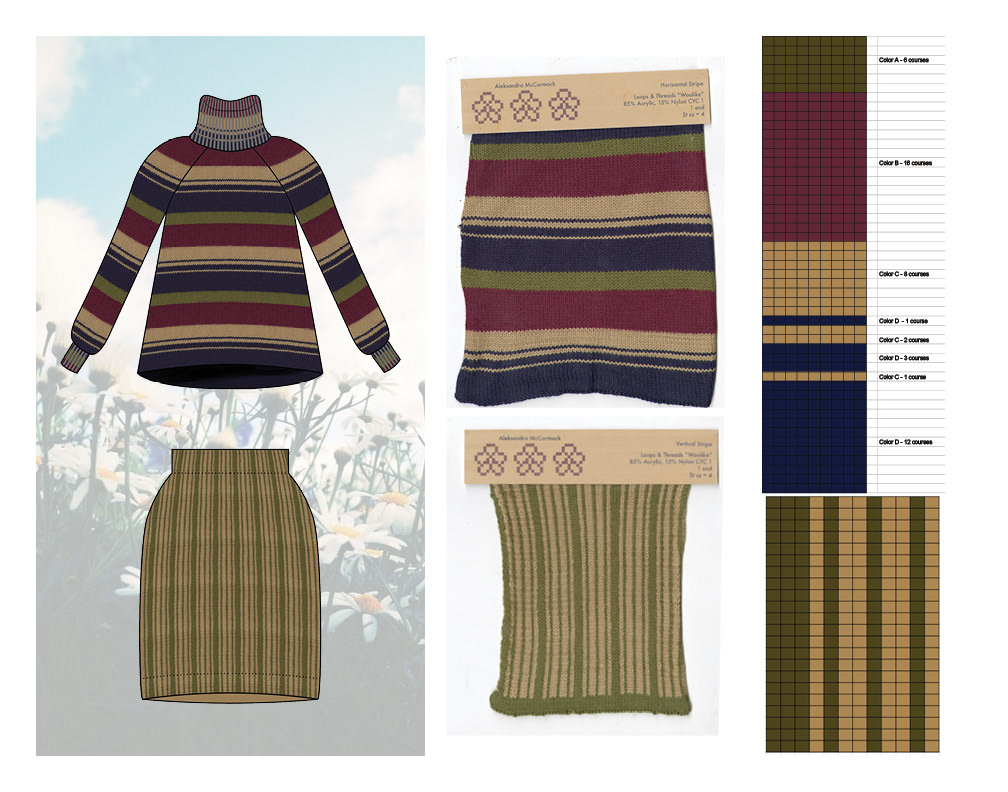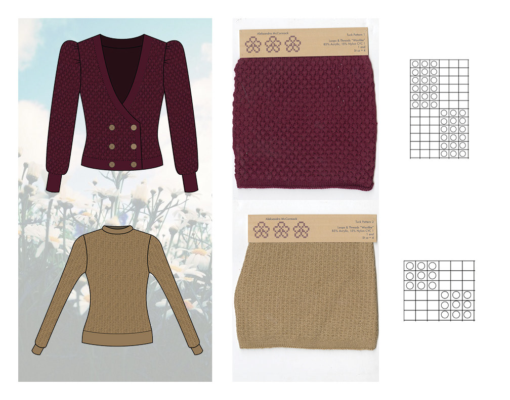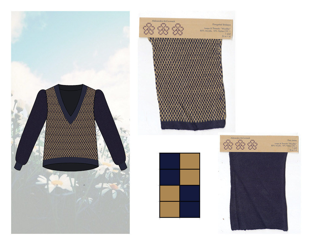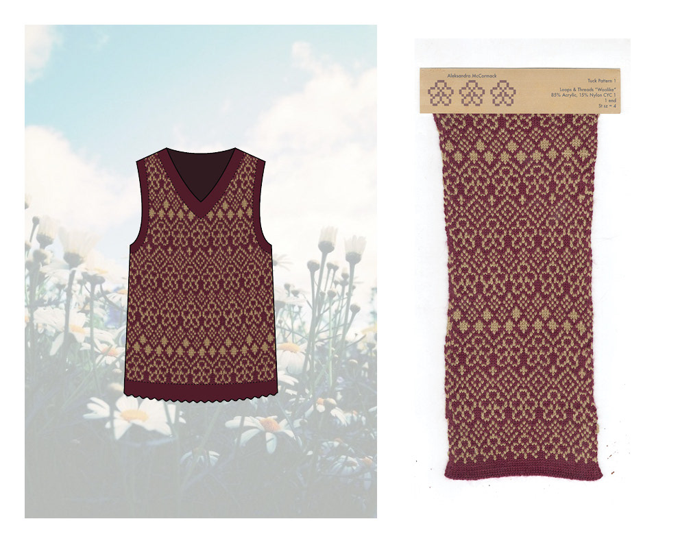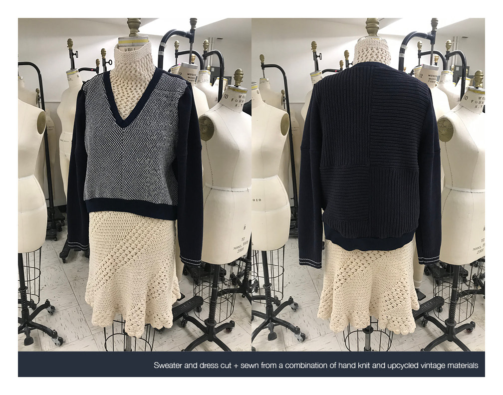 Knitwear collection developed after leaning essential techniques on a Brother knitting machine. Final look cut and sewn from a combination of hand knit and upcycled materials.